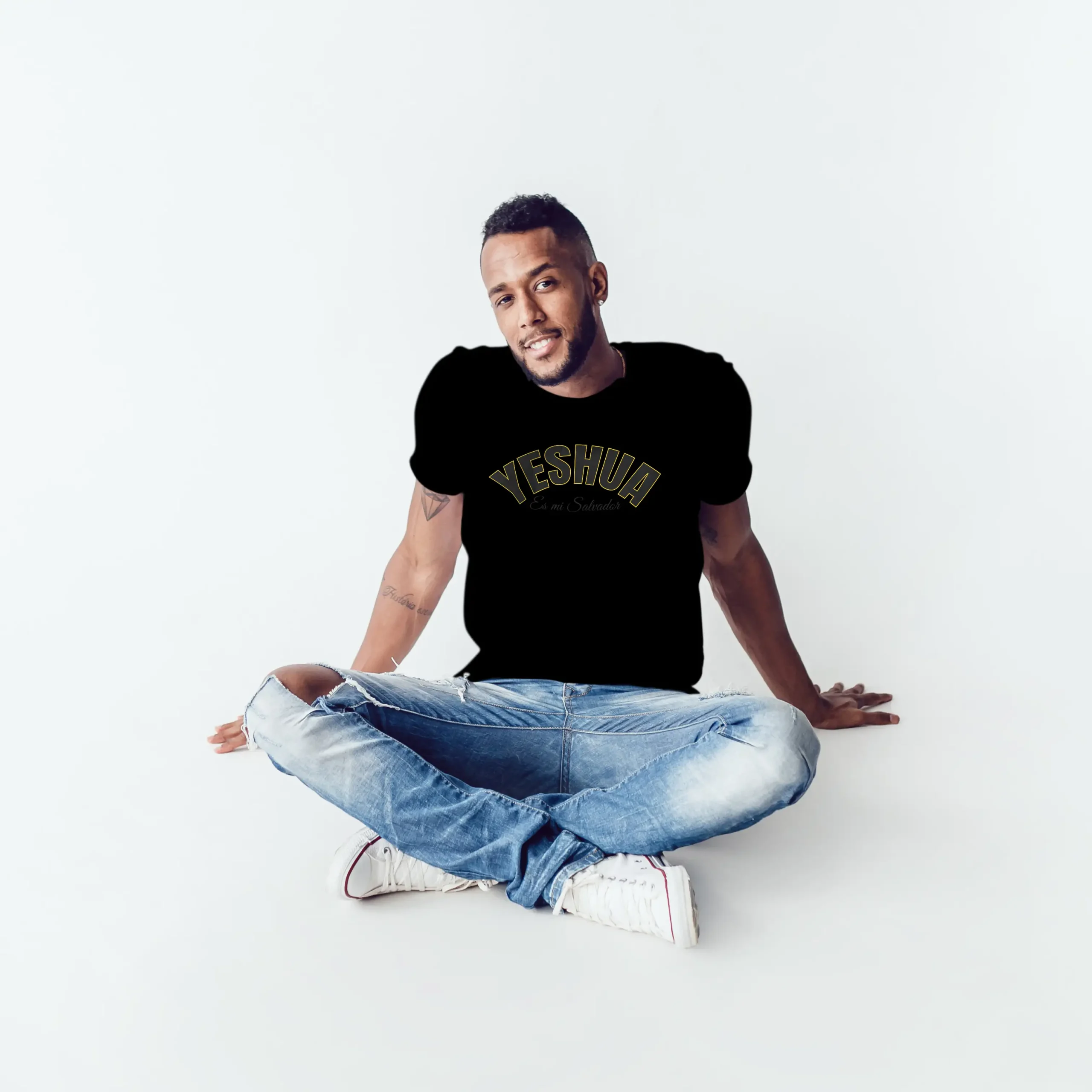 El cuello en rib mantiene su forma incluso después de múltiples lavadas, asegurando un acabado limpio y profesional. El diseño presenta la palabra YESHUA en un estilo destacado, acompañada de la frase Es mi Salvador, transmitiendo un mensaje poderoso sin perder elegancia.